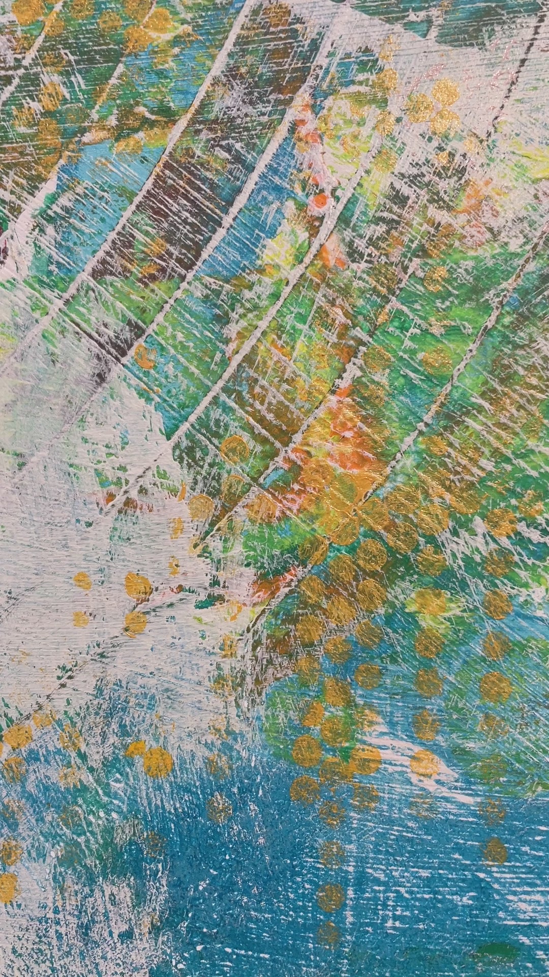 40" x 30" x 1.5" Mixed Media on Wood Panel.